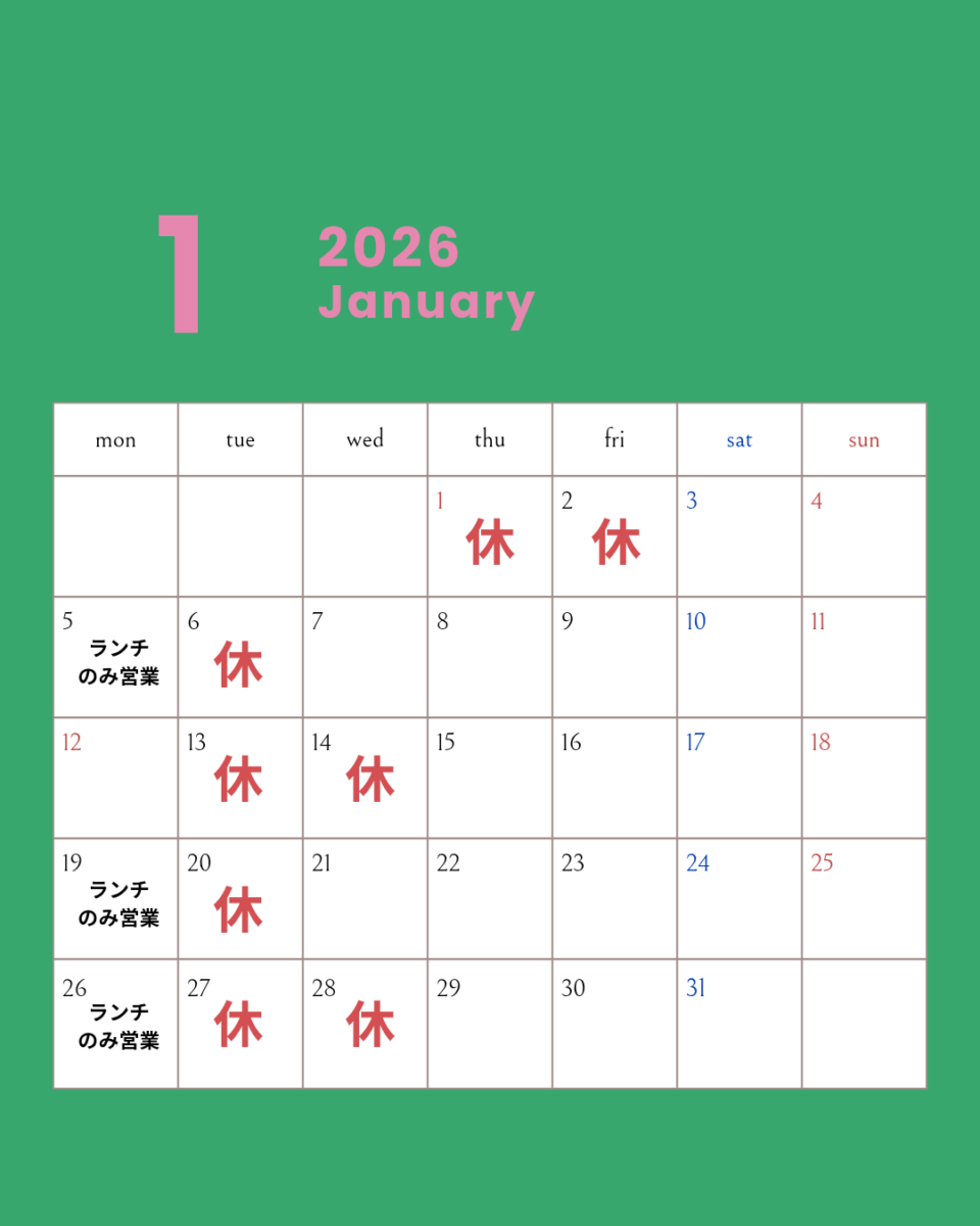 12月はイレギュラーな休業日がございます。カレンダーでご確認ください。